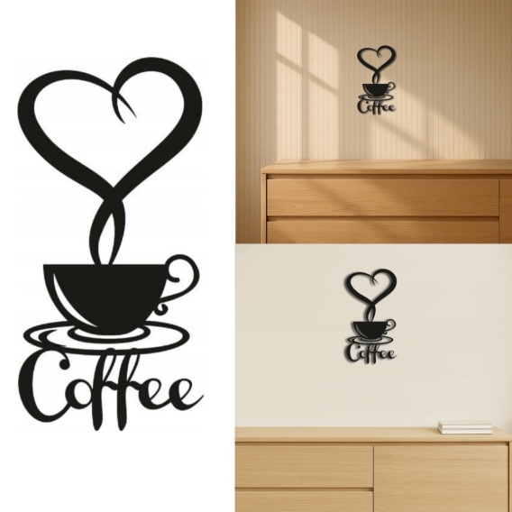 Dodaj odrobinę ciepła i stylu do swojego wnętrza! Ta elegancka ozdoba ścienna przedstawia filiżankę kawy, z której unosi się para w kształcie serca – idealny motyw dla miłośników aromatycznej kawy i przytulnych chwil.